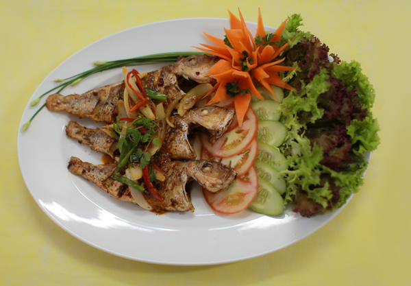 Deep fried coated Calamari rings served with tartar dressing garnished lemon wedges.