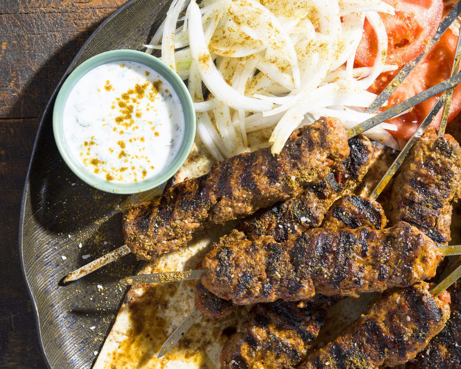 fillet of Beef stick with Lettuce tomatoes Onions